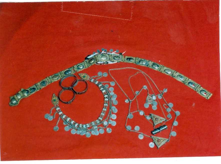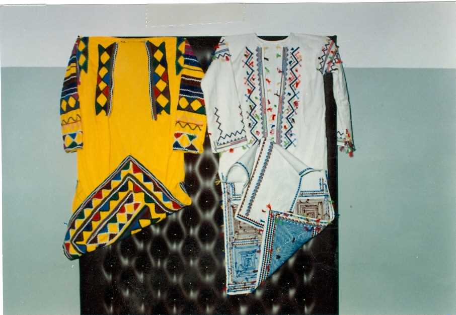 El tezgahlarında dokunan renkli yün kumaşlardan yapılır. Bele sarılır, saçakları boncuklarla süslenir.